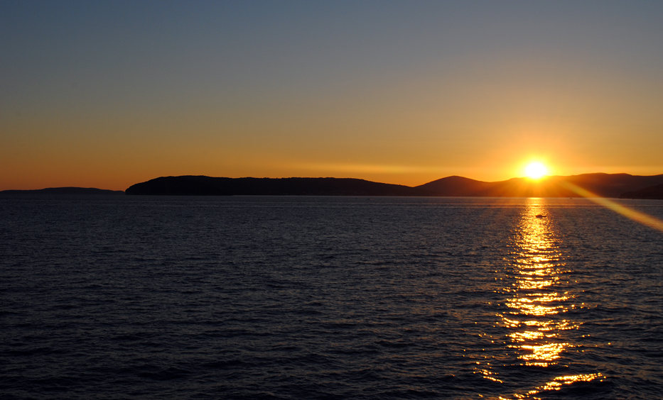 Prom na wyspę Brać płynie około 50min. Czujemy zmęczenie ale jesteśmy szczęśliwi że wszystko układa się tak jak to zaplanowaliśmy. Karolina podczas rejsu dzwoni do właścicielki apartamentu i umawia się na odebranie kluczy. My w tym czasie latamy po pokładzie i oglądamy prom. Do Supetaru wpływamy o godzinie 20:47. Kiedy zjeżdżamy z promu jest już ciemno, robimy małe zakupy w Lidlu i kierujemy się do Pucisca czyli do miejscowości w której mamy zarezerwowany apartament. Po spotkaniu się z właścicielami i odebraniu kluczy, jemy kolację, bierzemy prysznic i kładziemy się do spania. Ach bym zapomniał, w kuchni, czekało na nas pyszne ciasto zrobione przez właścicielkę domu, oraz kosz fig. Nie ukrywam że z tym owocem miałem pierwszy raz do czynienia. Zasypiam z myślą że najbliższe dni spędzimy w pięknej portowej osadzie na wyspie Brać.