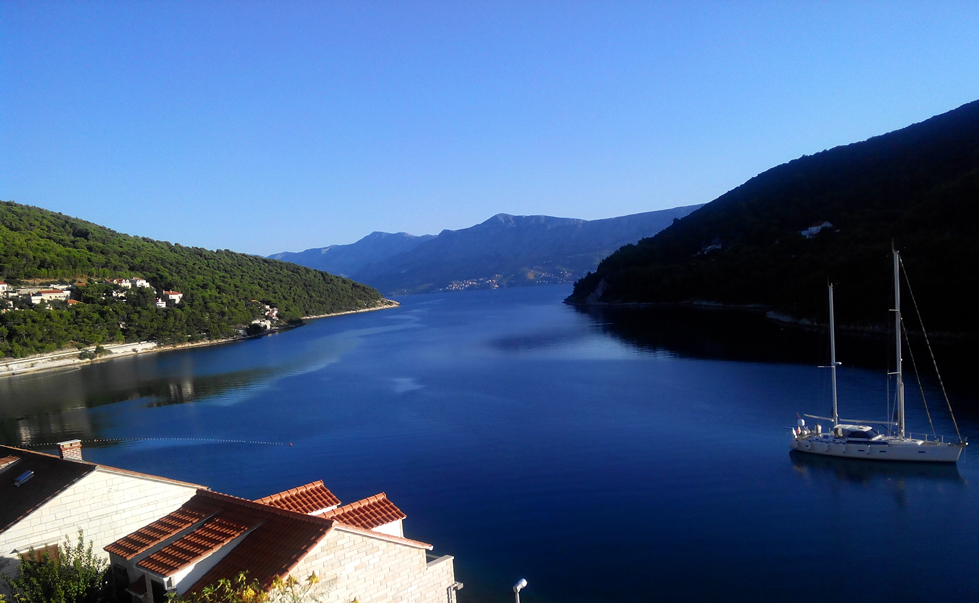Następnego dnia budzi nas piękny słoneczny dzień. Karolina krzyczy : „Wstawaj zrobiłam Ci kawę i choć szybko na taras”, wiec wstaje, wchodzę na taras patrzę i mówię: „Ja pi….” a tu widok jak z bajki, piękna zatoczka, góry, woda która mieni się od promieni słonecznych, szum cykad, stoimy zahipnotyzowani dobre parę minut, po czym robię dokładnie tak samo z kumplem Leszkiem który właśnie wstał. Wołam : „Leszek choć szybko na tarasik”, Leszek wchodzi, patrzy i mówi : „Ja pi…..” Jest dobrze, naprawdę dobrze. Kawka, śniadanie i już jesteśmy nad wodą.