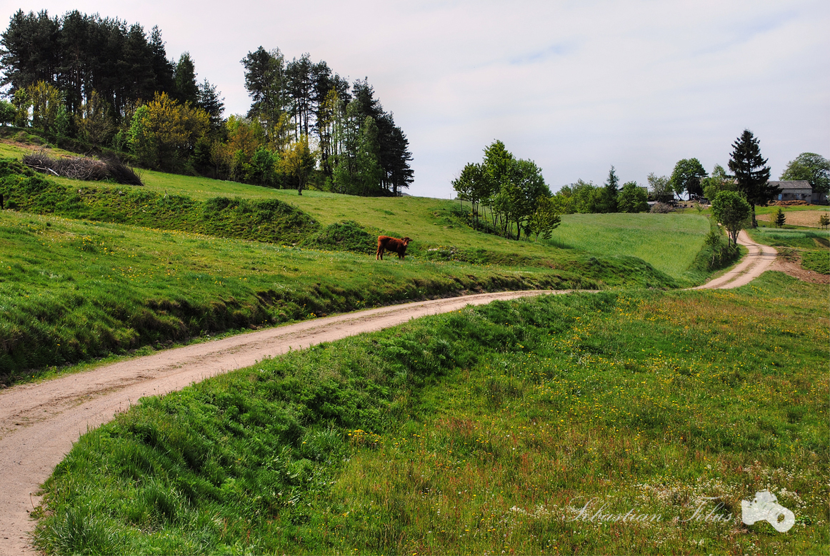 W końcu dojechaliśmy na miejsce i zaparkowaliśmy na poboczu. Po drugiej stronie ulicy robotnicy wykańczali dom i ciekawie przyglądali się co my robimy. W pewnym momencie jeden z nich wsiadł do samochodu i wyjeżdżając zatrzymał się koło nas i zapytał „Widzę że Pan ogląda ziemie na sprzedaż” nie pytajcie jaką miałem wtedy minę :-) Po krótkiej rozmowie oczywiście na temat zakupu działki budowlanej, miły Pan sobie pojechał a my zaczęliśmy w końcu szukać skrytki. Znaleziona skrzynka była w złym stanie, przemoczona, metalowe przypinki całe zardzewiałe, brak nowego logbooka, całe szczęście że była kartka, więc mogliśmy się wpisać. Wyrzuciliśmy zardzewiałe śmieci i przetarliśmy pojemnik, miałem ze sobą geokreta ale nie odważyłem się go tam zostawić. Skrzynka wymaga serwisu a nawet zmiany lokalizacji z powodu ziemi na sprzedaż na której się znajduje. Sama Pomieczyńska Huta to mała Kaszubska wieś jakich wiele, ale warto tam się wybrać na wycieczkę rowerową i popatrzyć na okoliczny krajobraz.