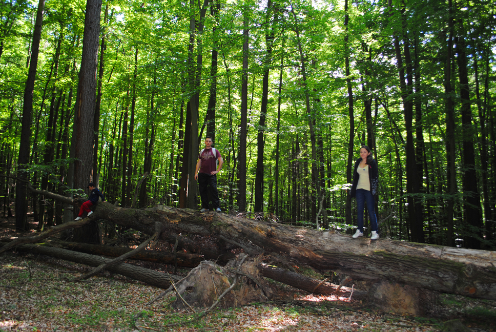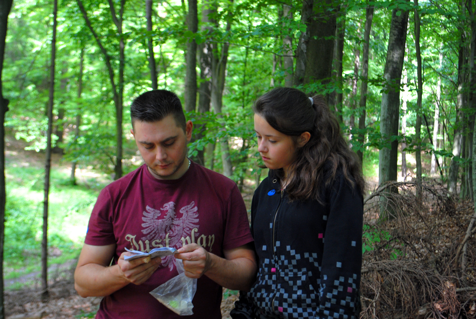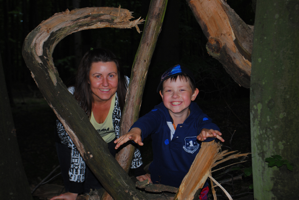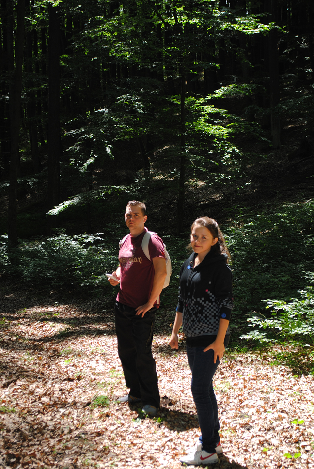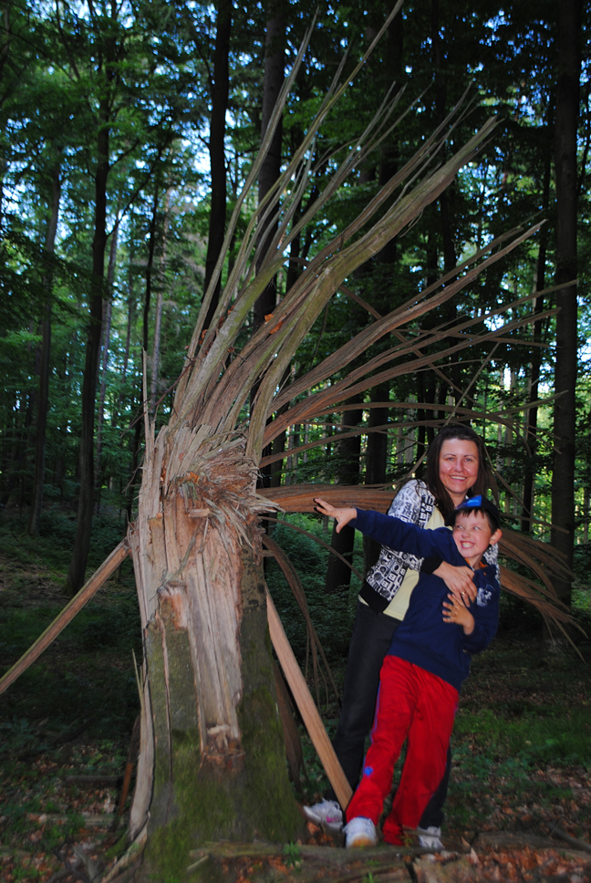 Idąc dalej naszą trasą, podziwialiśmy potężne drzewa i zastanawialiśmy się ile one mogą mieć lat, nas już nie będzie a ludzie dalej będą sobie spacerować podziwiając ogromne majestatycznie poruszające się drzewa, szumiące i opowiadające swoje pradawne historie, ehhhh poniosło mnie troszeczkę :-) Ok dotarliśmy na miejsce, pomnik jest a skrzynka niedaleko zupełnie odkryta. W środku wilgoć, niestety skrzynka wg. nas wymaga serwisu. W środku trzy „logbooki” jeden, ten najstarszy bardzo mokry. Wyciągnęliśmy wszystko i zaczęliśmy mini serwis. Całość wysuszyliśmy oraz dodaliśmy mały ołówek. Karolina zapakowała skrzyneczkę w suchą siatkę i dobrze maskując ukryła. Podsumowując, to była fajna wycieczka i warto znaleźć trochę czasu aby spędzić go razem z rodzina.