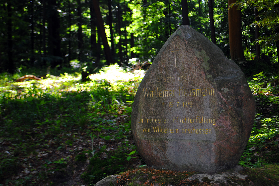 Kiedy wracaliśmy sprawdziłem czy można jeszcze jakiś keszyk zdobyć. OK coś jest….może zobaczymy „Grób Leśnika” OP0953 Od czego tu zacząć ? Chyba od przeczytania informacji na temat tej skrzynki. Okazuje się że skrzyneczka jest ukryta w pobliżu pomnika poświęconemu leśniczemu Waldemarowi Heusmanno’wi zastrzelonego przez kłusowników.
