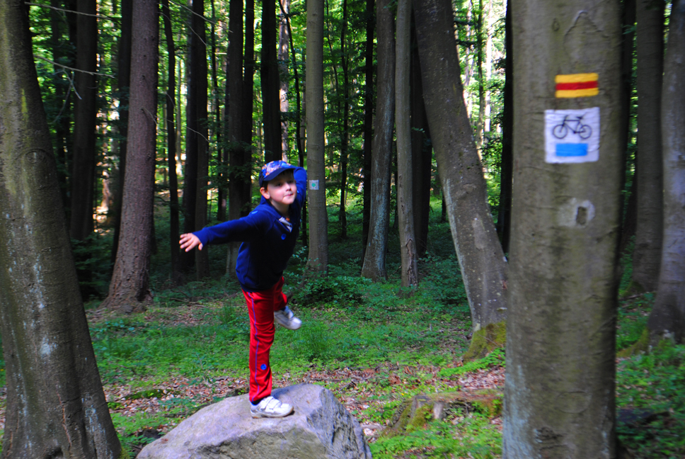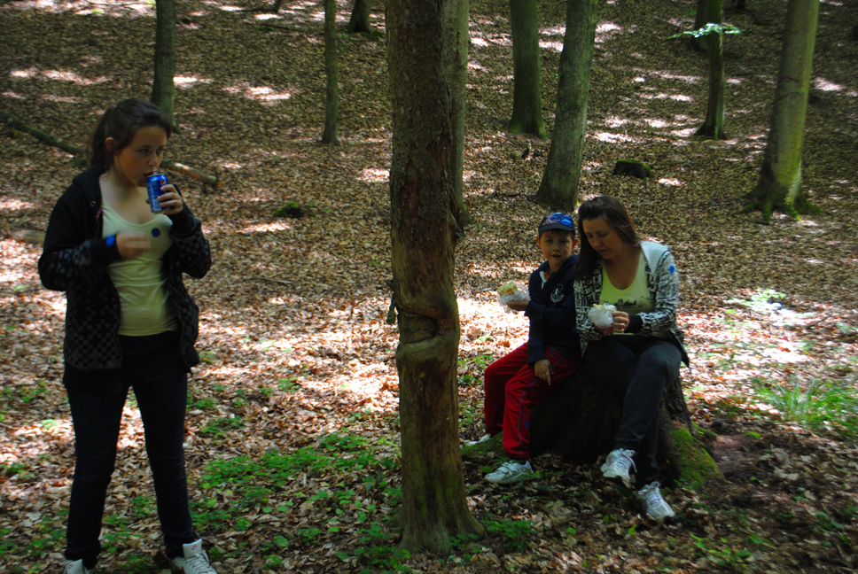 Zaciekawiła mnie informacja że skrzynka znajduje się w pobliżu punktu gdzie stykają się granice Gdańska, Sopotu i Gdyni. Po zakupach, już na samym początku awantura, ponieważ Wiktoria odwracając się potrąciła Krystiana który upuścił puszkę z colą i wylała się prawie cała zawartość. Natomiast moje zapewnienia ze Wiktoria podzieli się swoją połową, Krystiana nie przekonywały i obrażony na cały świat szedł kilka metrów za nami. Skrzynka schowana jest na terenie trójmiejskiego parku krajobrazowego, pogoda dopisała więc spacer był bardzo relaksujący i przyjemny. Kiedy GPS pokazał 10m do celu rozpoczęło się tzw. czesanie terenu i to jest jak zwykle najbardziej ekscytujący moment w zdobywaniu geocache’a bo tak naprawdę nie wiesz gdzie szukać, tym bardziej gdy nie ma żadnych wskazówek. Poszukiwania w sumie nie trwały długo, Karolina znowu trafiła i odnalazła skrytkę. Zawartość taka nijaka :-) nic ciekawego, strasznie nas denerwuje jak ludzie wrzucają jakieś niekompletne kawałki z „kinder niespodzianek” zardzewiałe grosiki itd. Wpisaliśmy się do „logbooka” zabraliśmy geokreta GK04B1 i wyruszyliśmy w drogę powrotną. Ps. I nawet Krystian zapomniał że był obrażony :-)